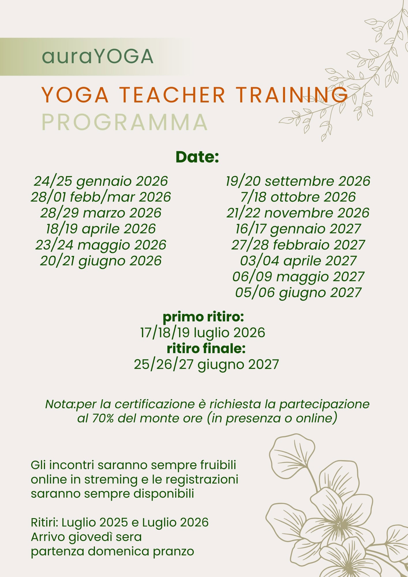 Diventa il cambiamento che vuoi vedere nel mondo! Unisciti al nostro Yoga Teacher Training e trasforma la tua passione in una carriera appagante. Scopri come vivere e insegnare lo yoga con consapevolezza e autenticità. Prenota il tuo posto oggi e inizia il tuo percorso verso una vita più equilibrata e piena di ispirazione!